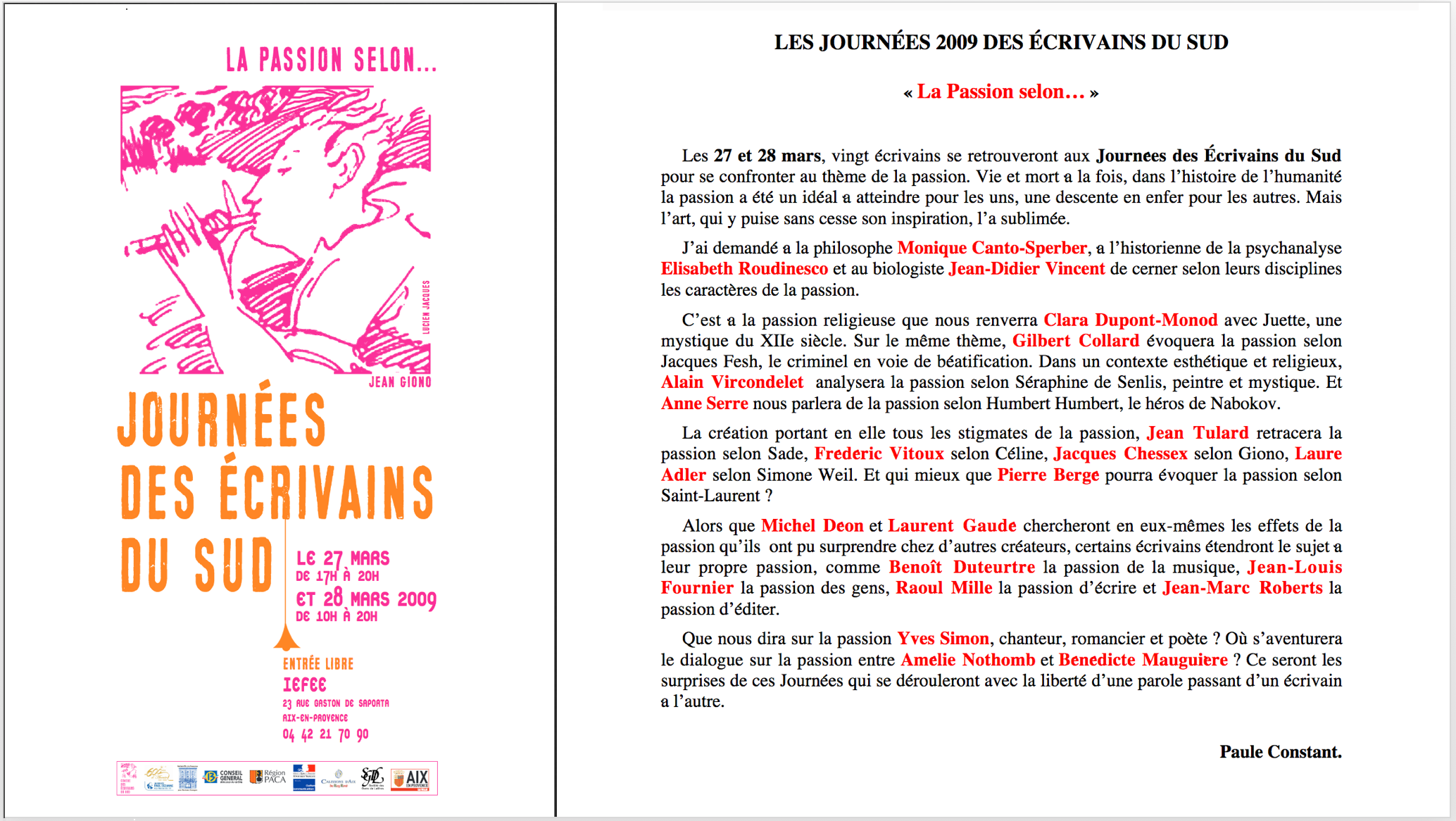 de Paule Constant : "La littérature comme métaphore" (01/03/2010)