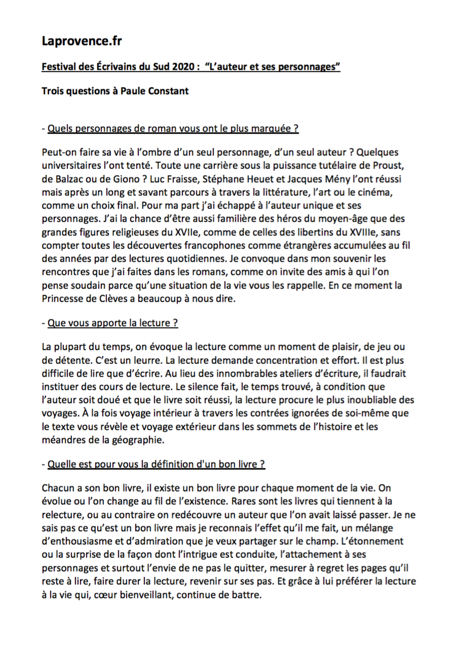17 mars : La métropolitaine de la semaine, c'est Paule Constant !